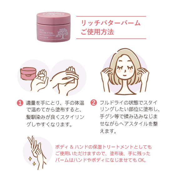 未精製では香りのクセが強いシアバターを、本来の保湿力を残しながら、香りを丁寧に整える精製と質感を左右する配合比率にこだわり、3年間をかけて理想的なバランスの「軽さ」と「しっとり感」にたどり着きました。