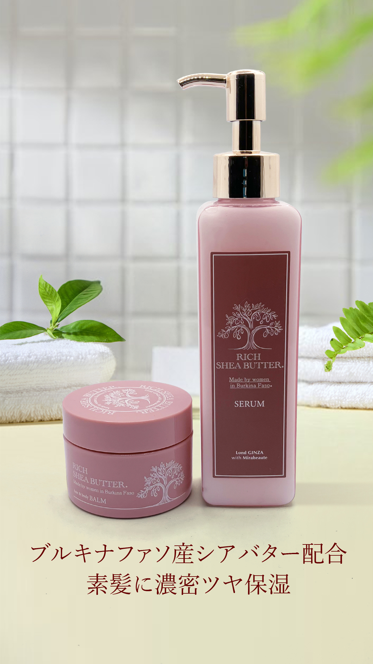 なかでもブルキナファソ産シアバターは現地女性が代々受け継いだ伝統製法で丁寧に作られ、高い保湿力・浸透性・安定性を兼ね備えた高品質原料。